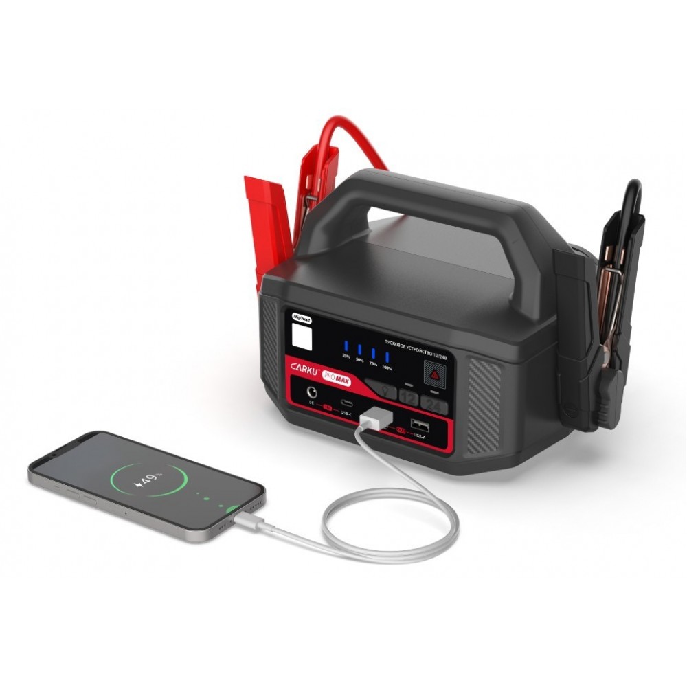 CARKU PRO MAX - пусковий пристрій 12/24В. Багатофункціональне зовнішнє джерело живлення, яке допоможе завести мотор вашої машини взимку при посадженому акумуляторі і так само здатне забезпечити зарядку електроніки. Покращені пускові характеристики для ще більшої впевненості при позаштатних ситуаціях.